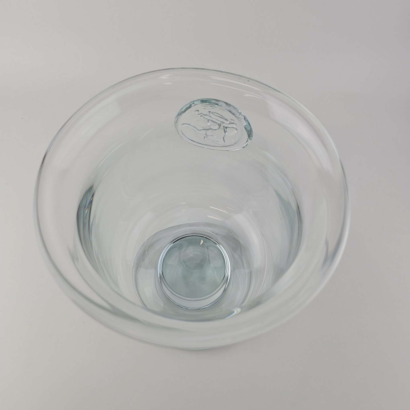 Pokal i glas produceret i forbindelse med Privatbankens 125 års jubilæum. Pokalen er prydet med et segl på, der forestiller en Hermesfigur og har kalkform