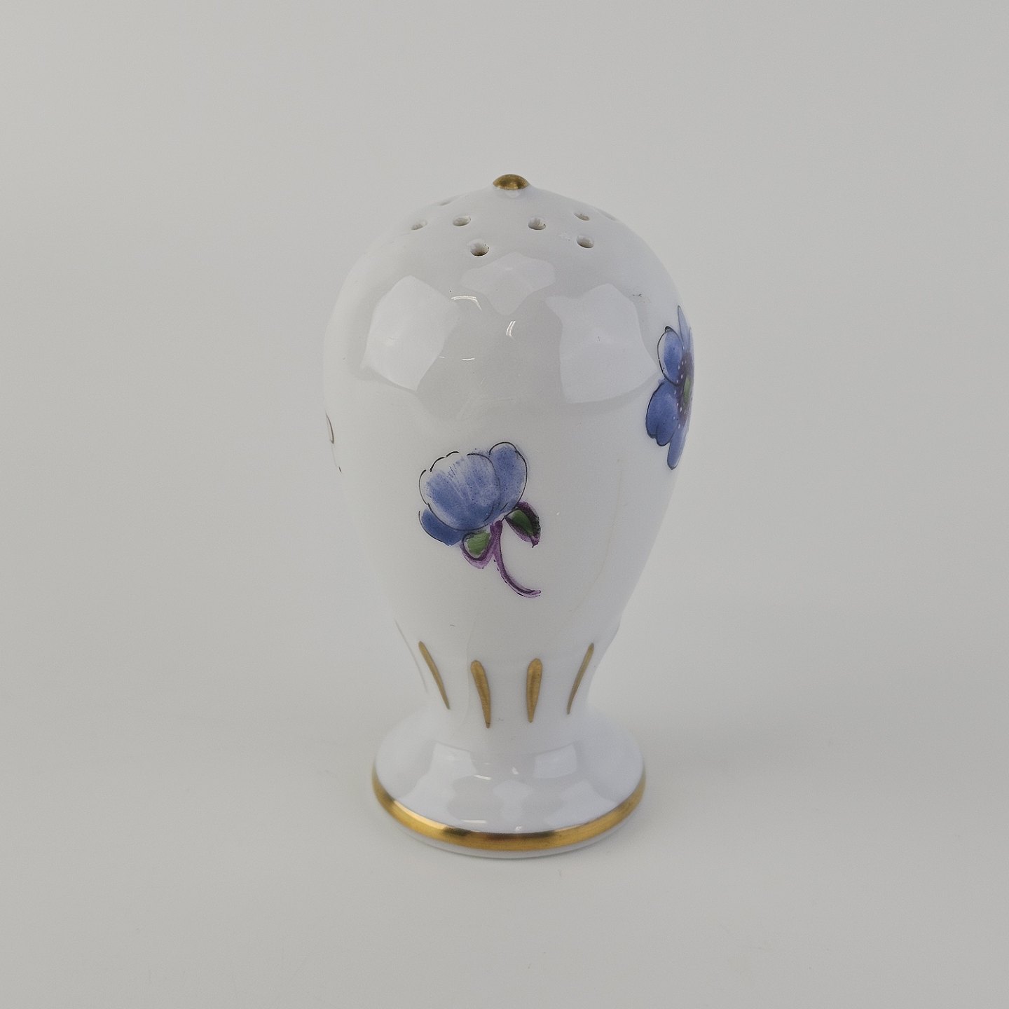 Antonius er af hvidt porcelæn med skælform dekoreret med håndmalede blå anemoner og guldkant. Også kendt under navnet Blå Anemone.