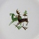 Fajancestel i stelform C med dekoration af grøn og brun hjort på lys baggrund med kantbort af blade i brune nuancer.