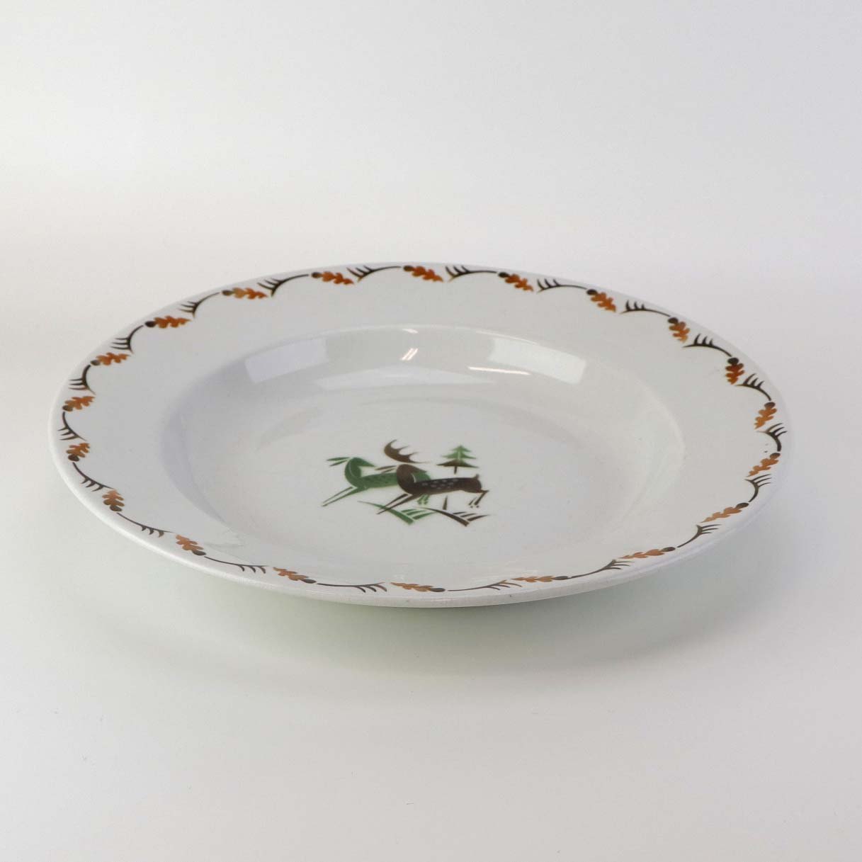 Dyb suppetallerken i fajance fra Hjortestellet Convolvolus, som blev fremstillet i perioden 1930-1940