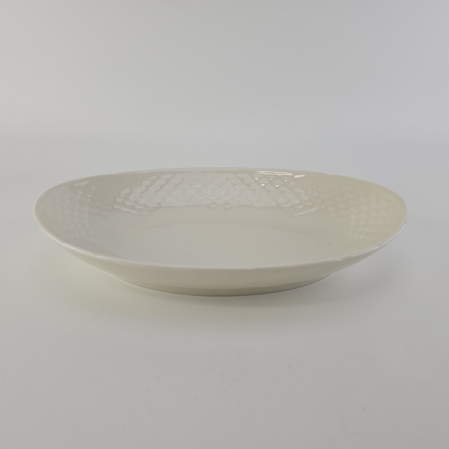 Elegance er cremefarvet glaseret porcelæn med skæl mønster