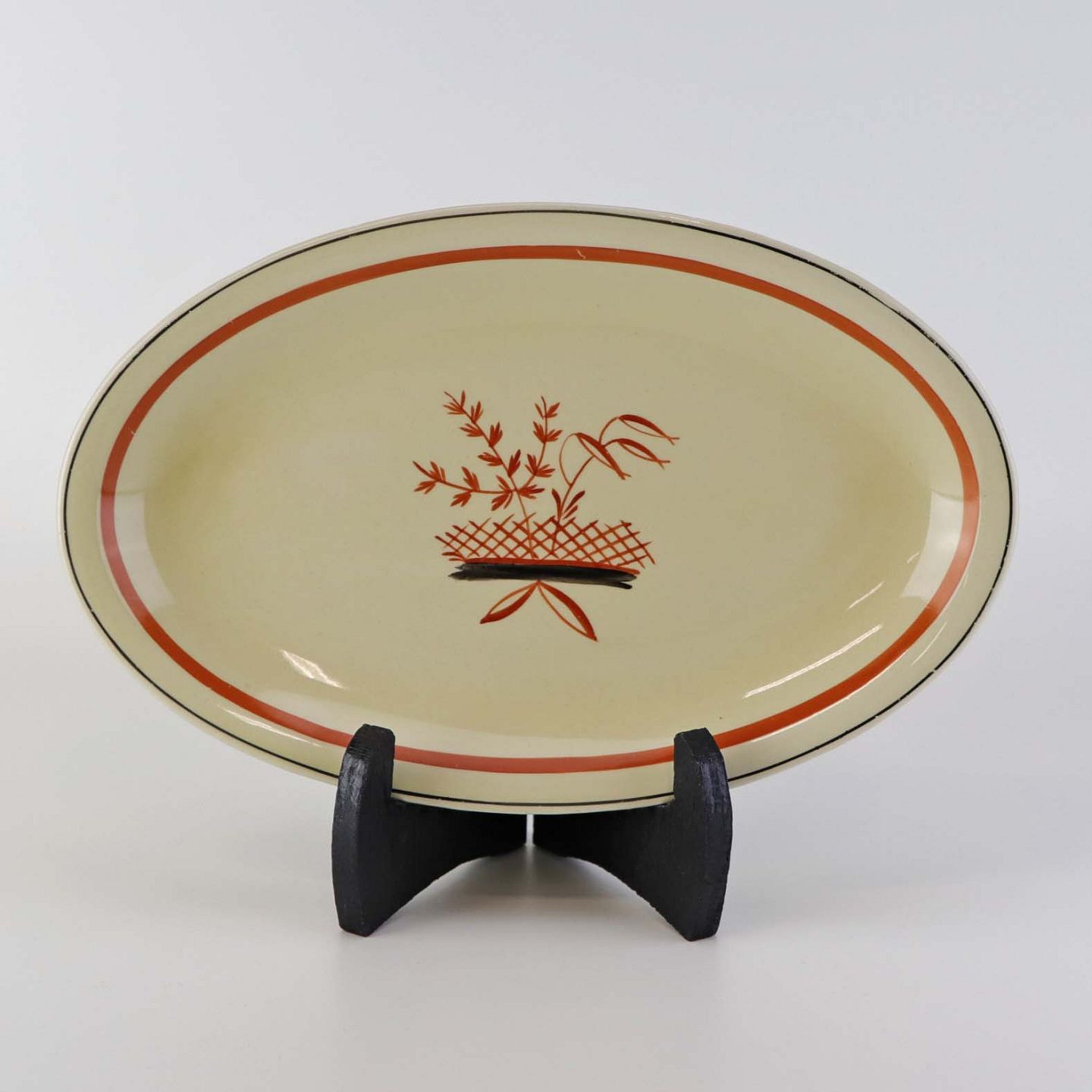 Mindre ovalt serveringsfad i fajance fra stellet Mariager. Nr. 257