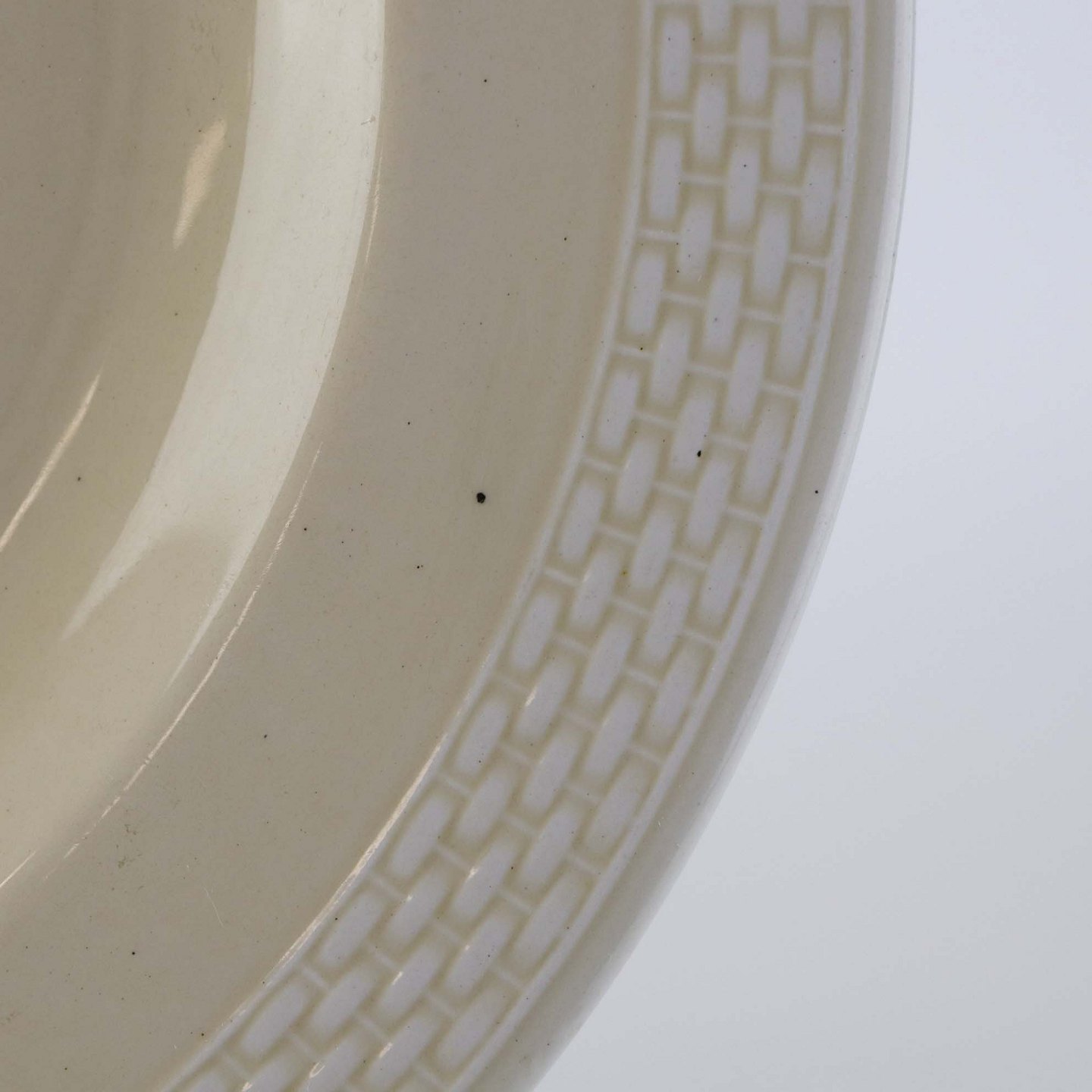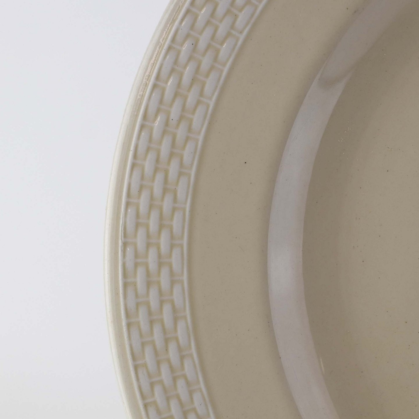Sandfarvet fajancestel i stelform Viktoria II - Fletværk med dekoration af hvidt flet på gullig baggrund.