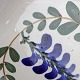Fajancestel med dekoration af ranker af blåregn og blade på lys baggrund afsluttet med kant af runde blå pletter.