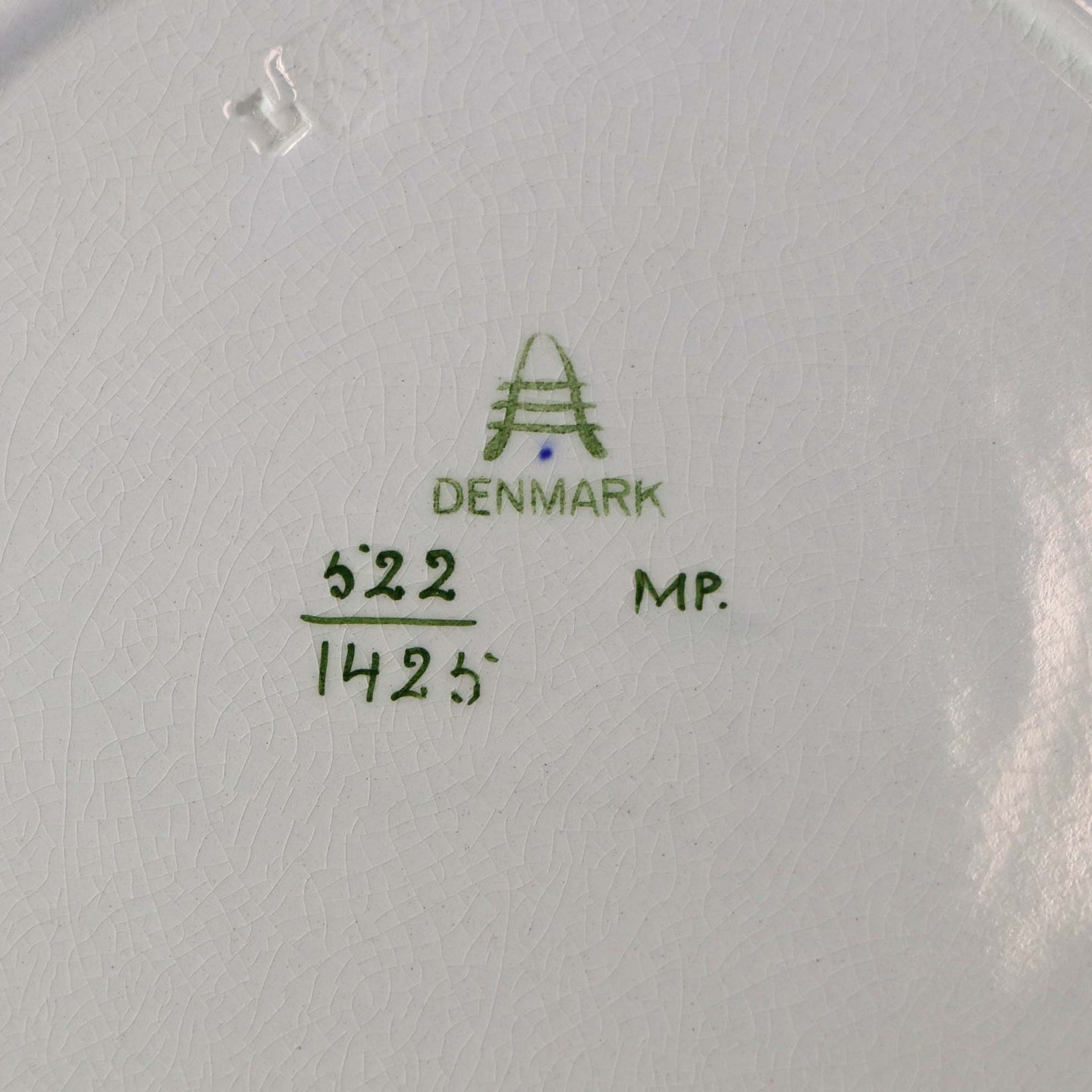 Fremstår med krakkeleringer i glasuren og mindre brugsspor på dekorationen.