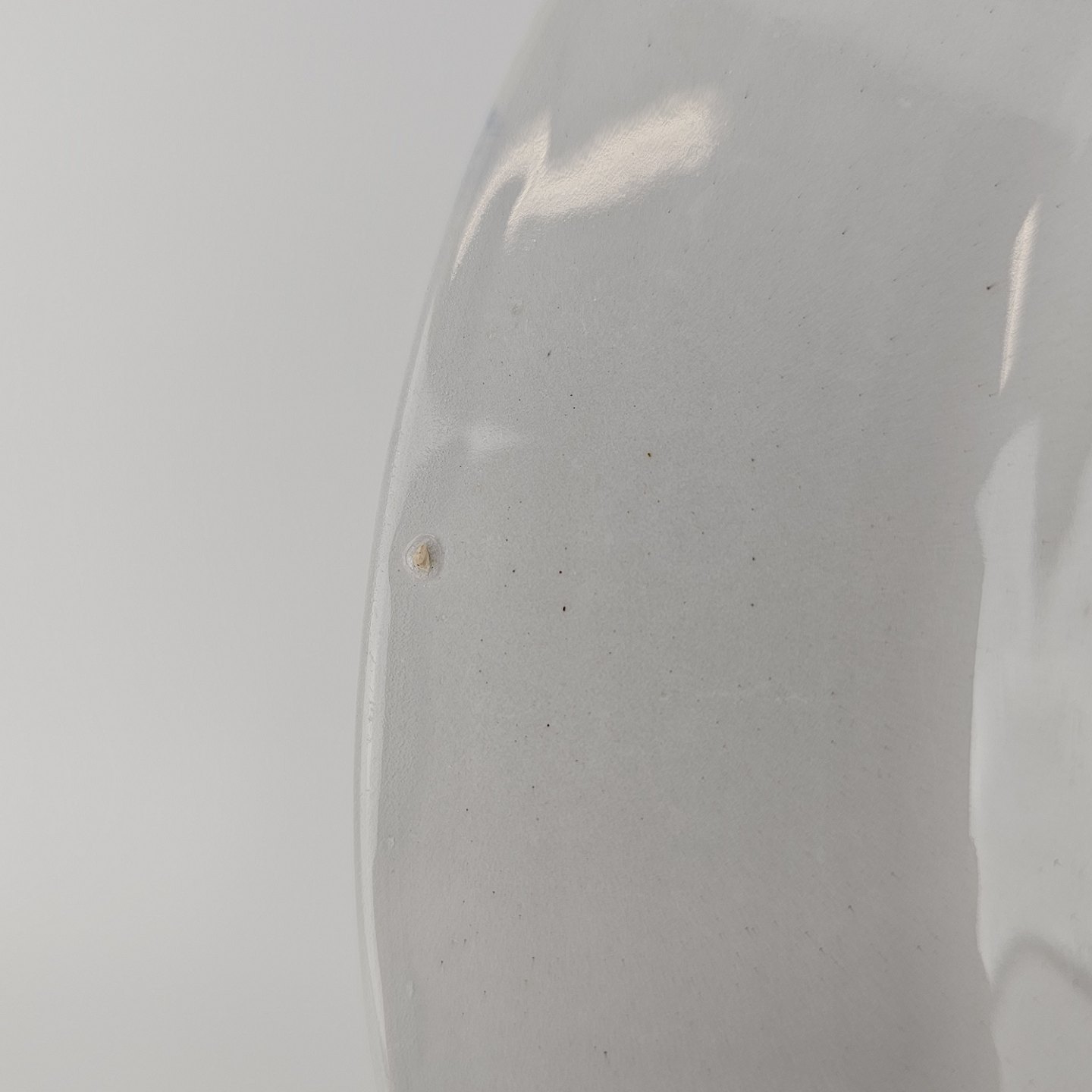 Hvidt fajancestel i stelform Sterling med motiv af blå blomster og blå prikker på kanten.