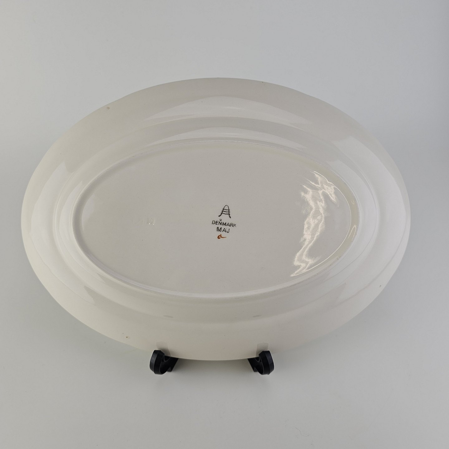 Ovalt fad i fajance fra stellet Maj fremstillet i perioden 1941-1966.