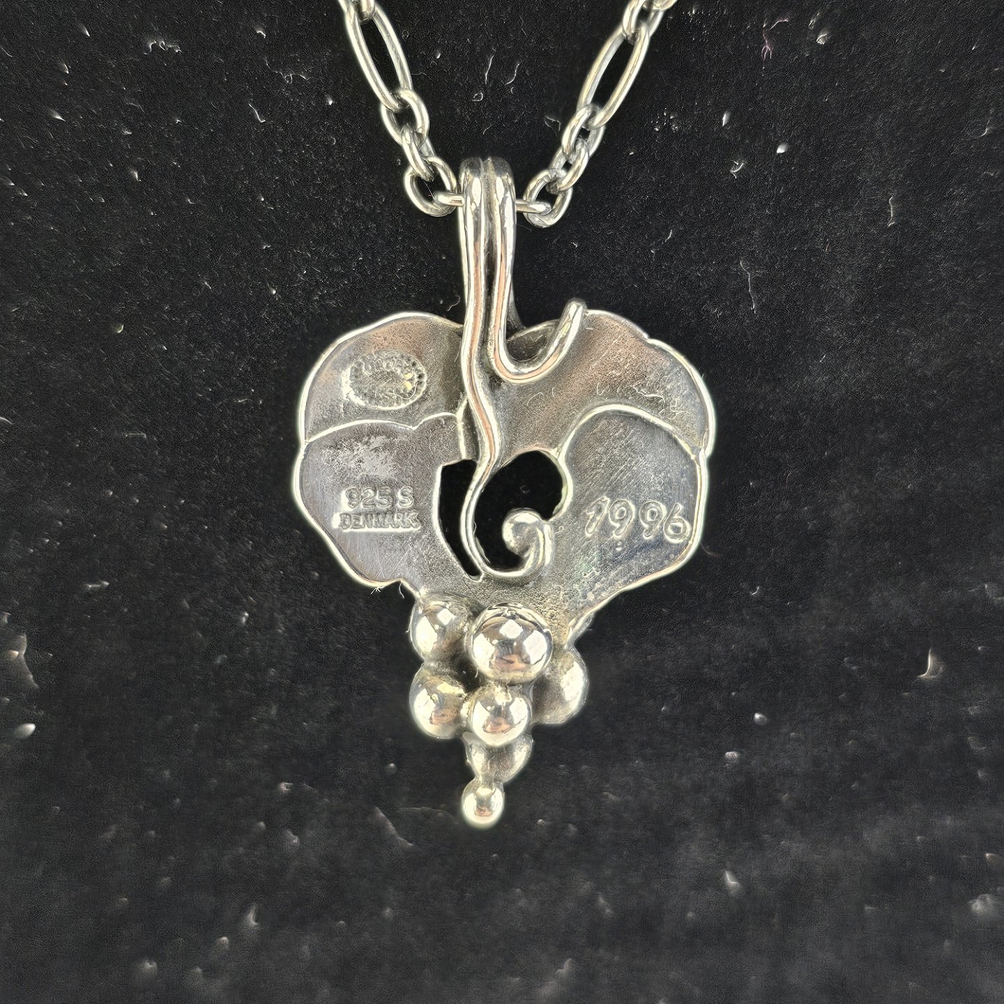Vedhæng i sterling sølv med motiv af en klase druer, og karneol perle.