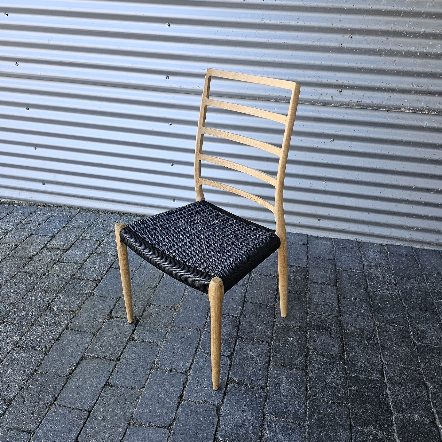 Niels Ole Møller spisebordsstol i eg med sort flettet sæde