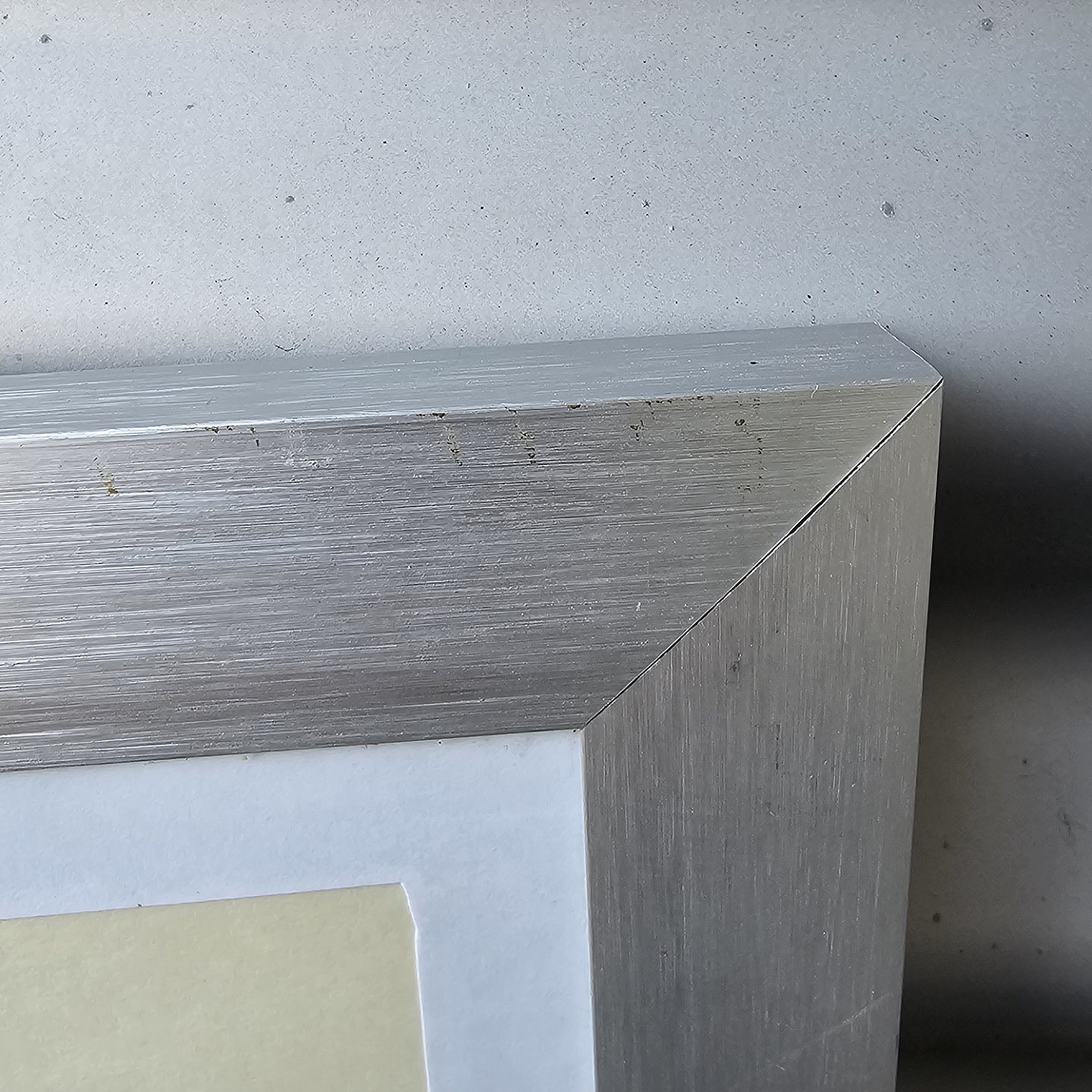 Akvaral på papir med abstrakt motiv af to mennesker i sort og grå. Monteret i sølvramme