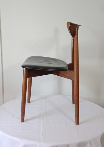 Spisebordsstol design Harry Østergaard. Produceret af Randers Møbelfabrik. Stel i teak med læderbetrukket sæde. Sædet fremstår med brugspatina. Pæn stand.