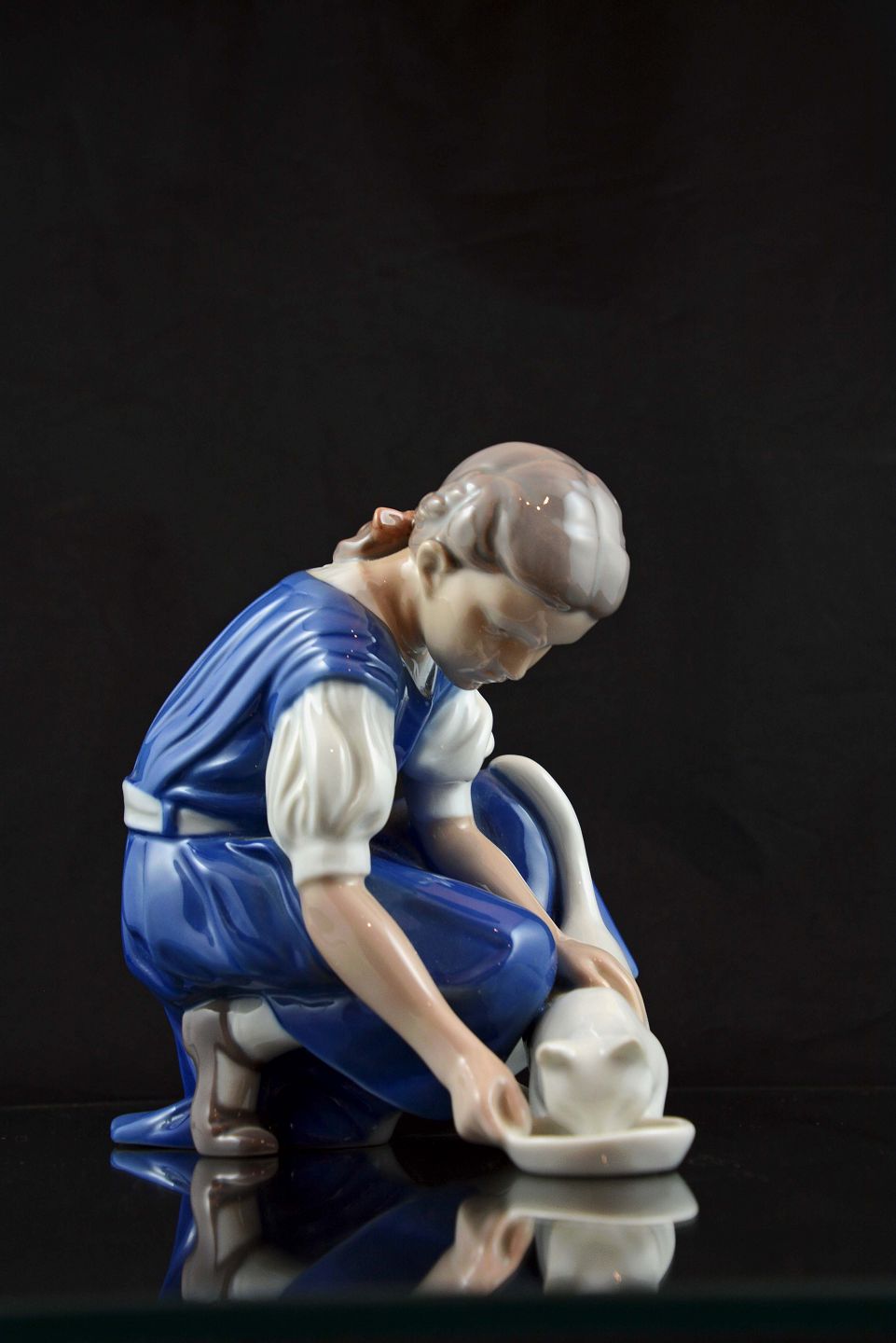 Figur af pige med kat (nr. 1745) fra Bing og Grøndahl. 1. sort.