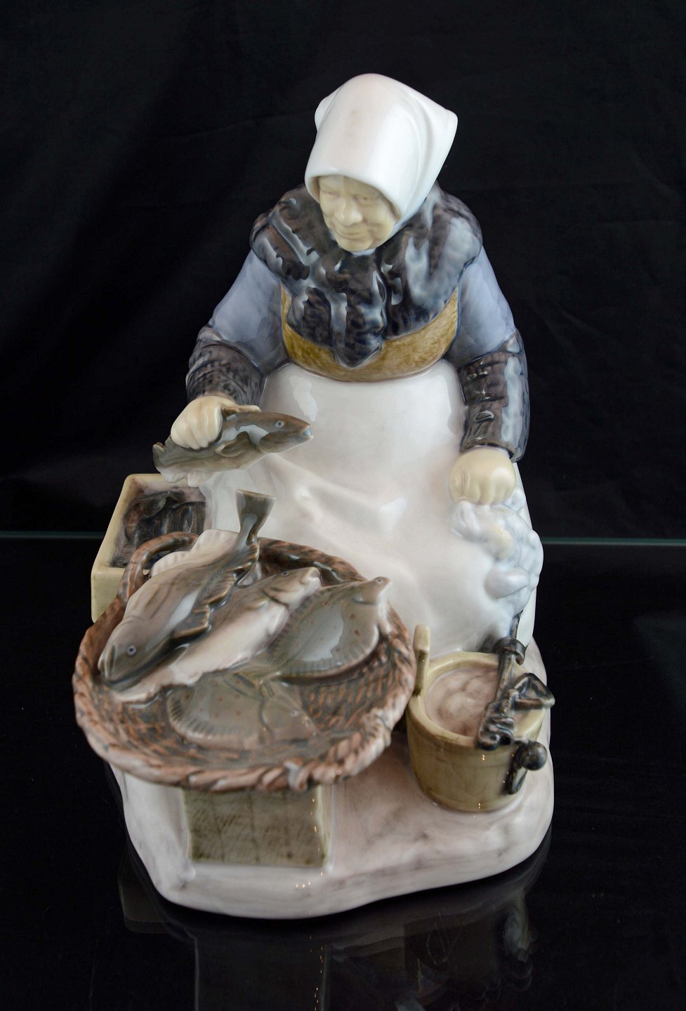 Stor porcelænsfigur af fiskerkone (nr.2233) af Axel Locher for Bing og Grøndahl. Intakt og 1. sort.
