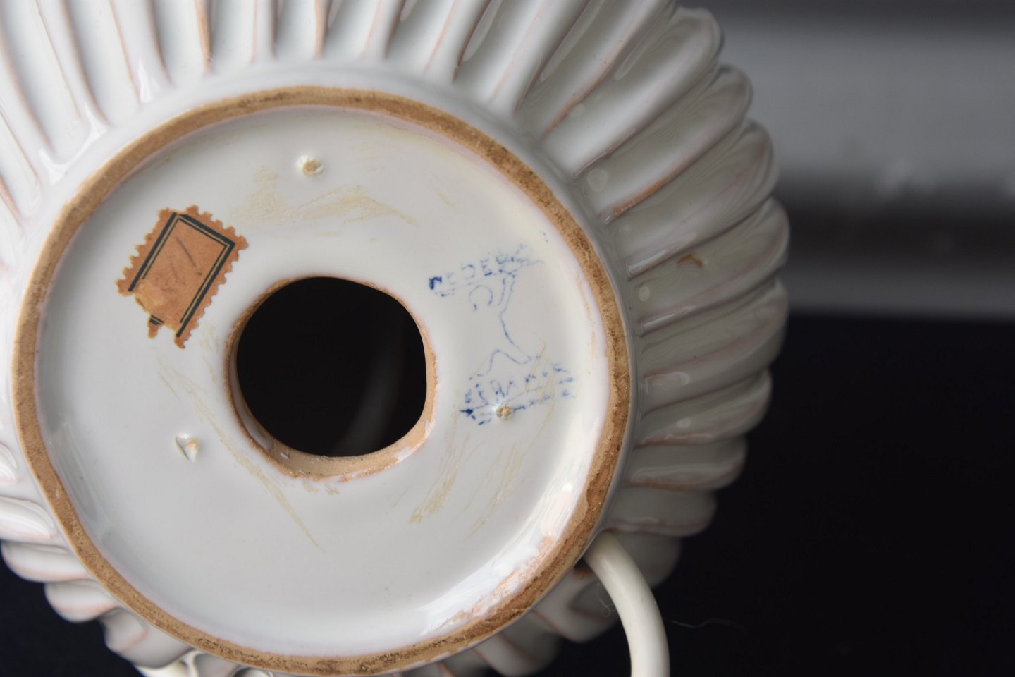 Hvid riflet bordlampe i keramik, Eslau lignende med Le Klint skærm.
