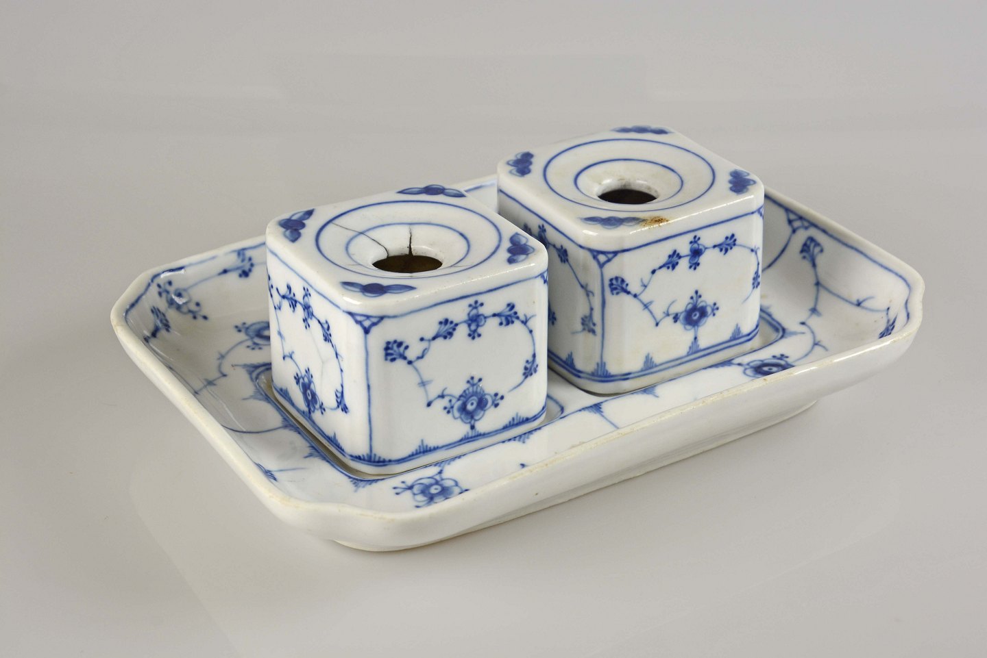 Blåmalet Blækhussæt fra perioden år 1853-1895 fra Bing og Grøndahl