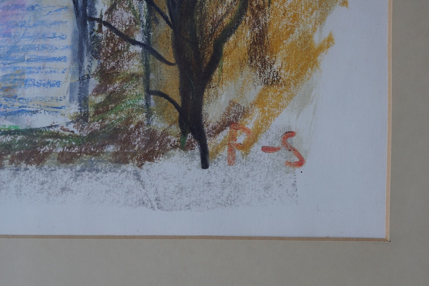 "Huse, Bangsbostrand" fra Frederikshavn, oliekridt tegning