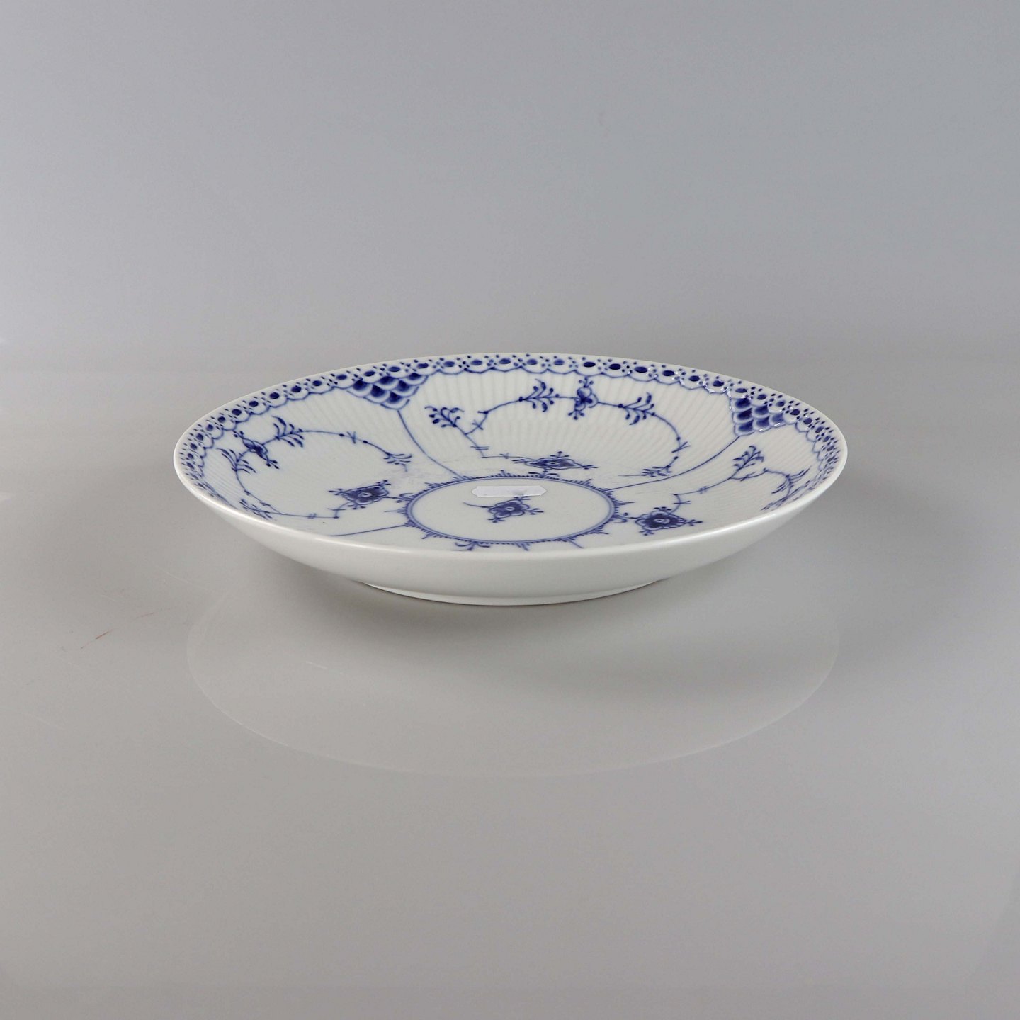 Rundt fad i porcelæn i serien musselmalet halvblonde nr. 1/761