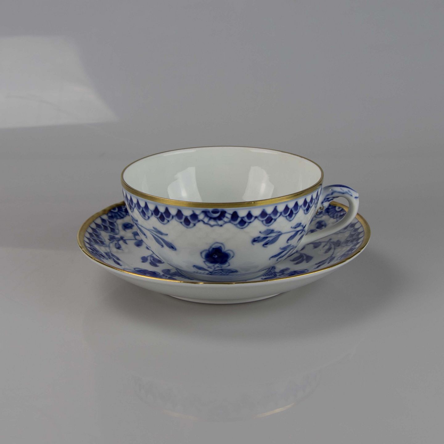 Tekop med underkop fra stellet Dickens Sommerfugl med guldkant nr. 473