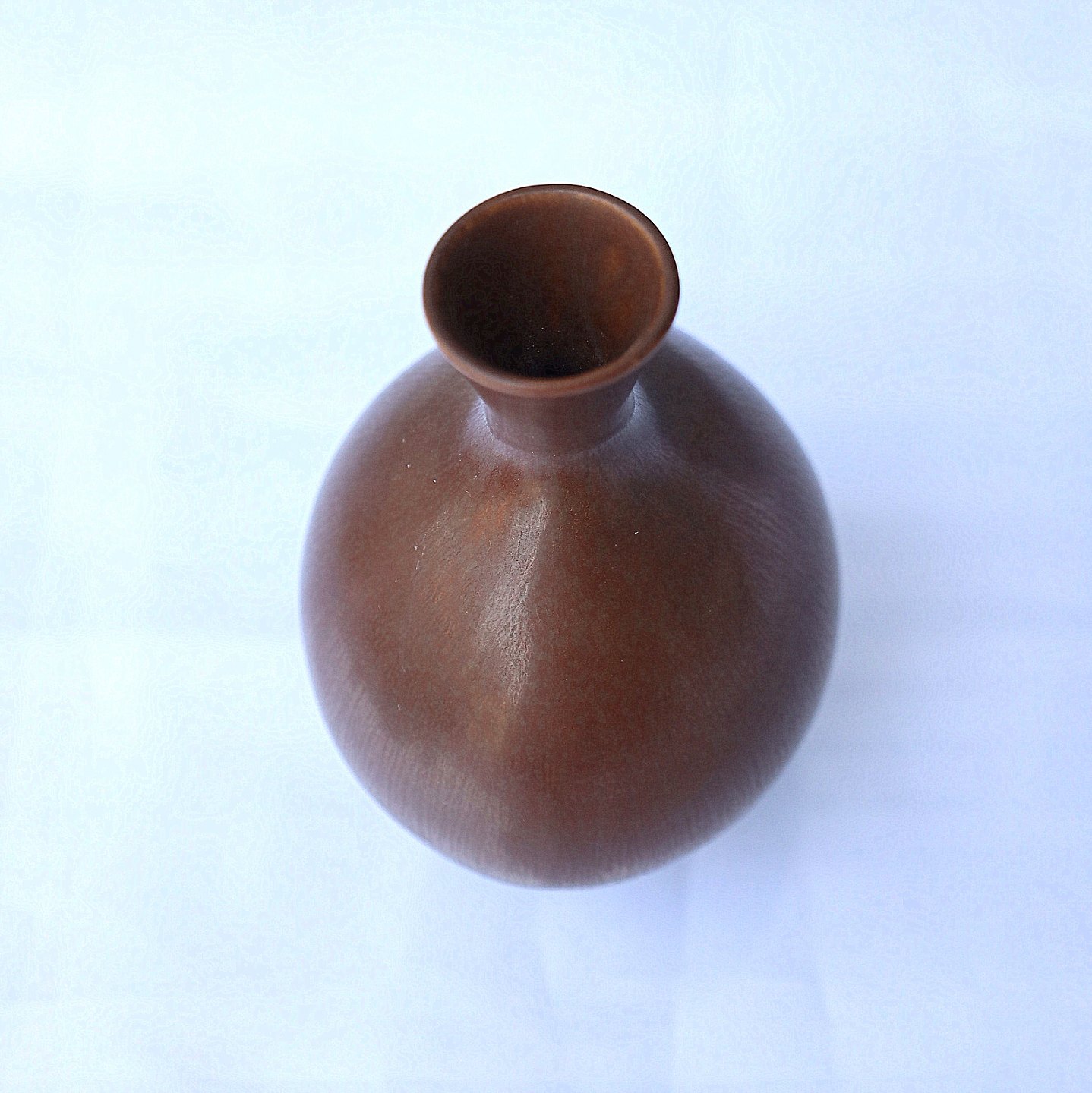 Gustavsberg, Sweden. Berndt Friberg, keramik vase med ensfarvet harepelsglasur. Vase er brun let oval i facon, med høj hals.