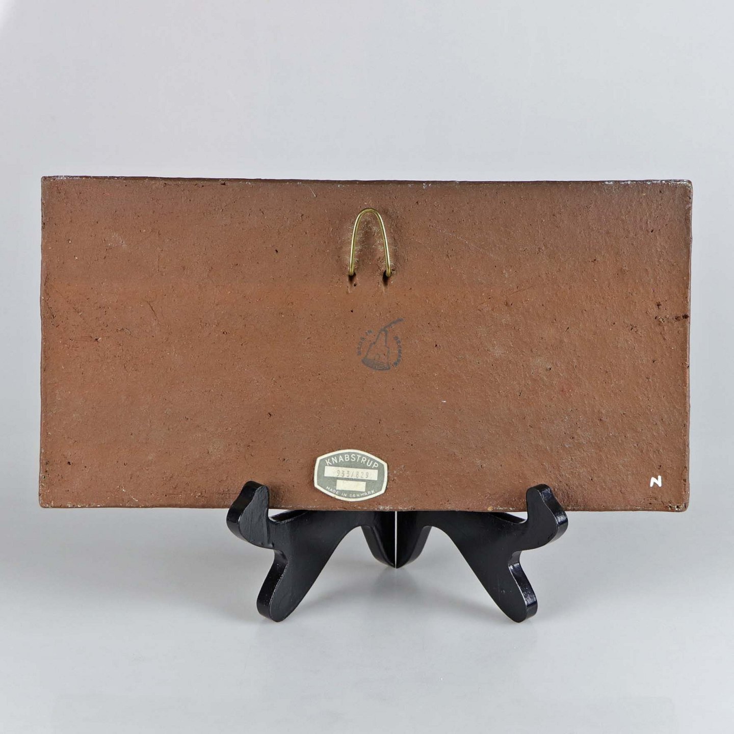 Relief af stentøj dekoreret med stime af blå fisk. No 933/829