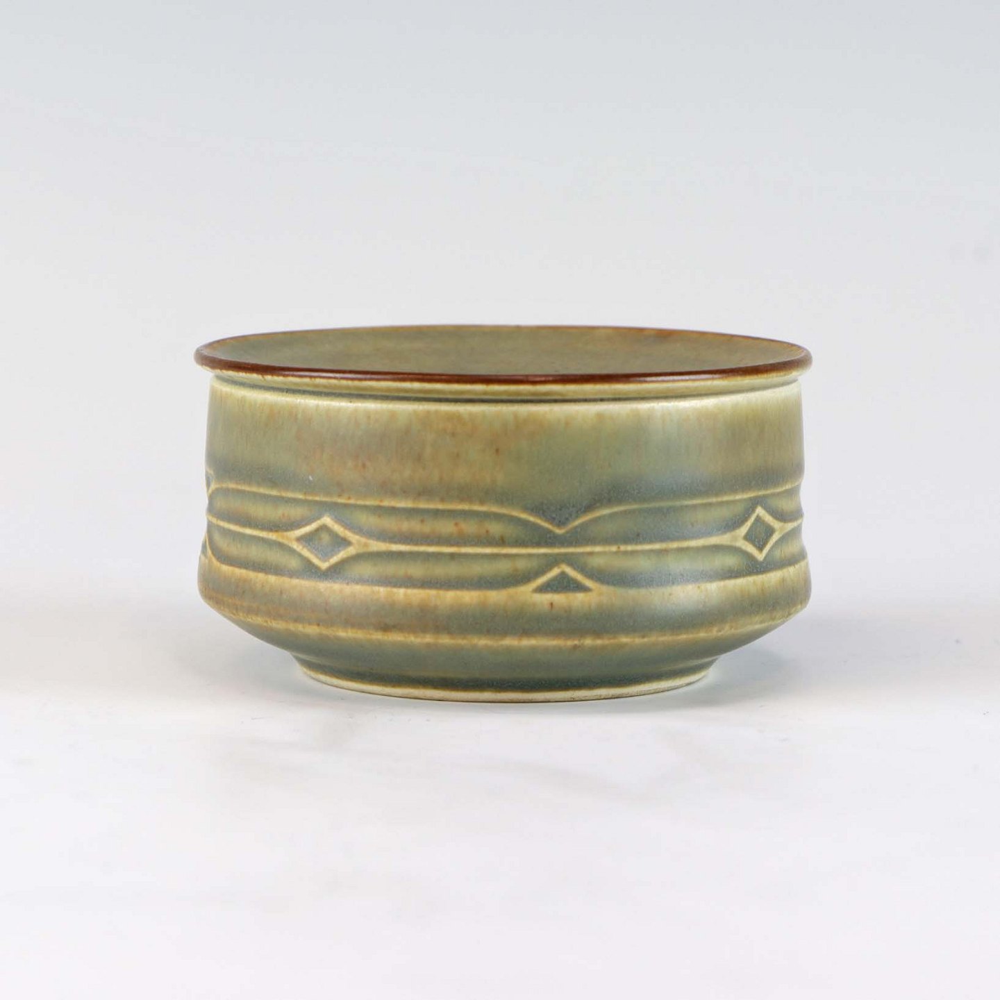 Stellet Rune er glaseret i grønne og råhvide farver med en brun kant.
