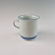 Stellets runde former er dækket med en silkeblød glasur og håndmalet med er lys almueblå farve lagt under glasuren. Stellet er ovnfast