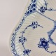Musselmalet halvblonde er riflet hvidt porcelæn med dekoration af blå ranker og en kant med blonder