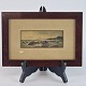 Indrammet Oliekridttegning i sort træramme med motiv af ældre herre med stok i smøge med titlen Sonden by i Løkken 1949