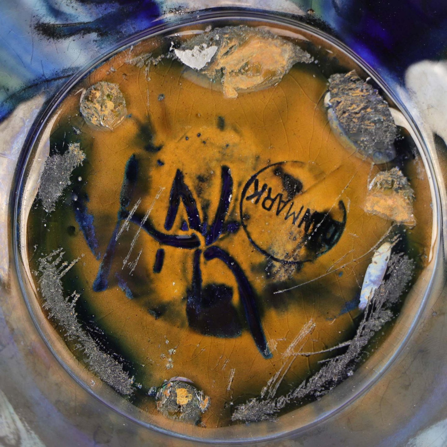 Vase i keramik med glasur abstrakt mønster i forskellige blå, grønne og sorte og brunt mønstre