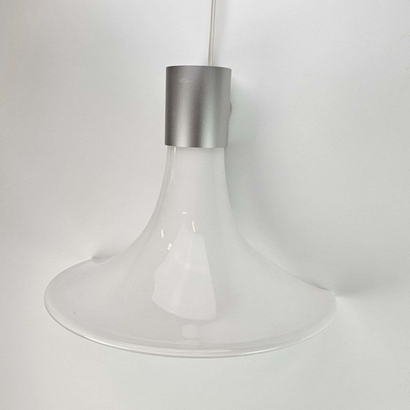 Mundblæst hvid glaslampe med stålhætte, til væg