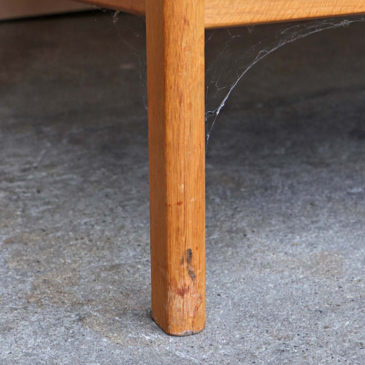 Fremstår med brugsspor på stel og stof. Trænger til ompolstring.