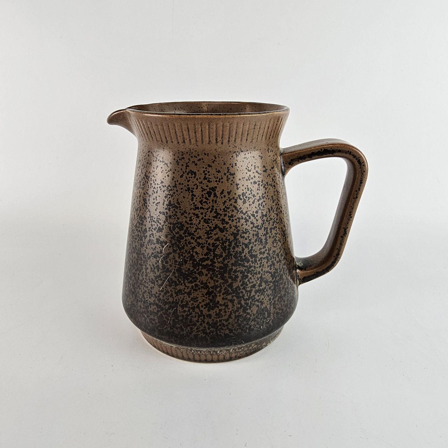 Kande af stentøj og dekoreret med en brun nuance glasering.