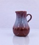 Vase i stentøj med hank med blåsort glasur samt abstrakt mønster af linjer og ovale cirkler.