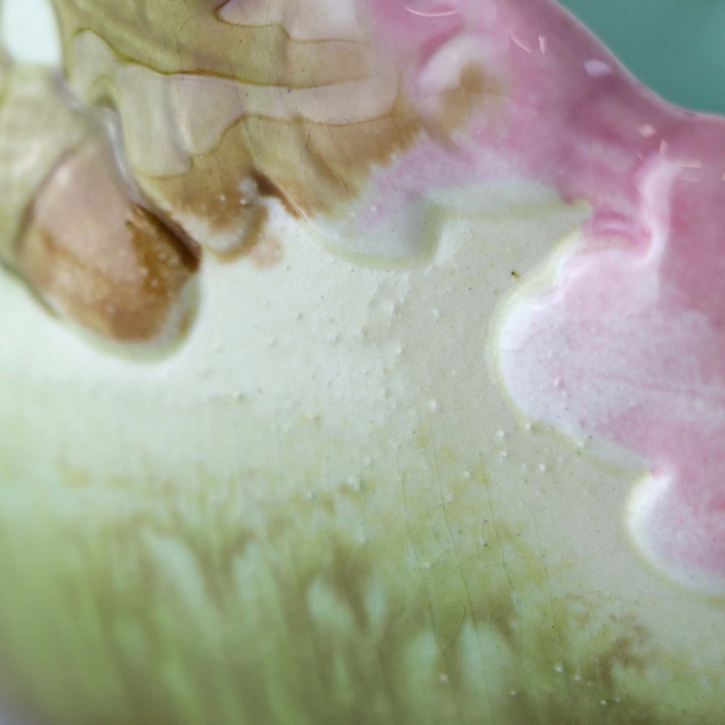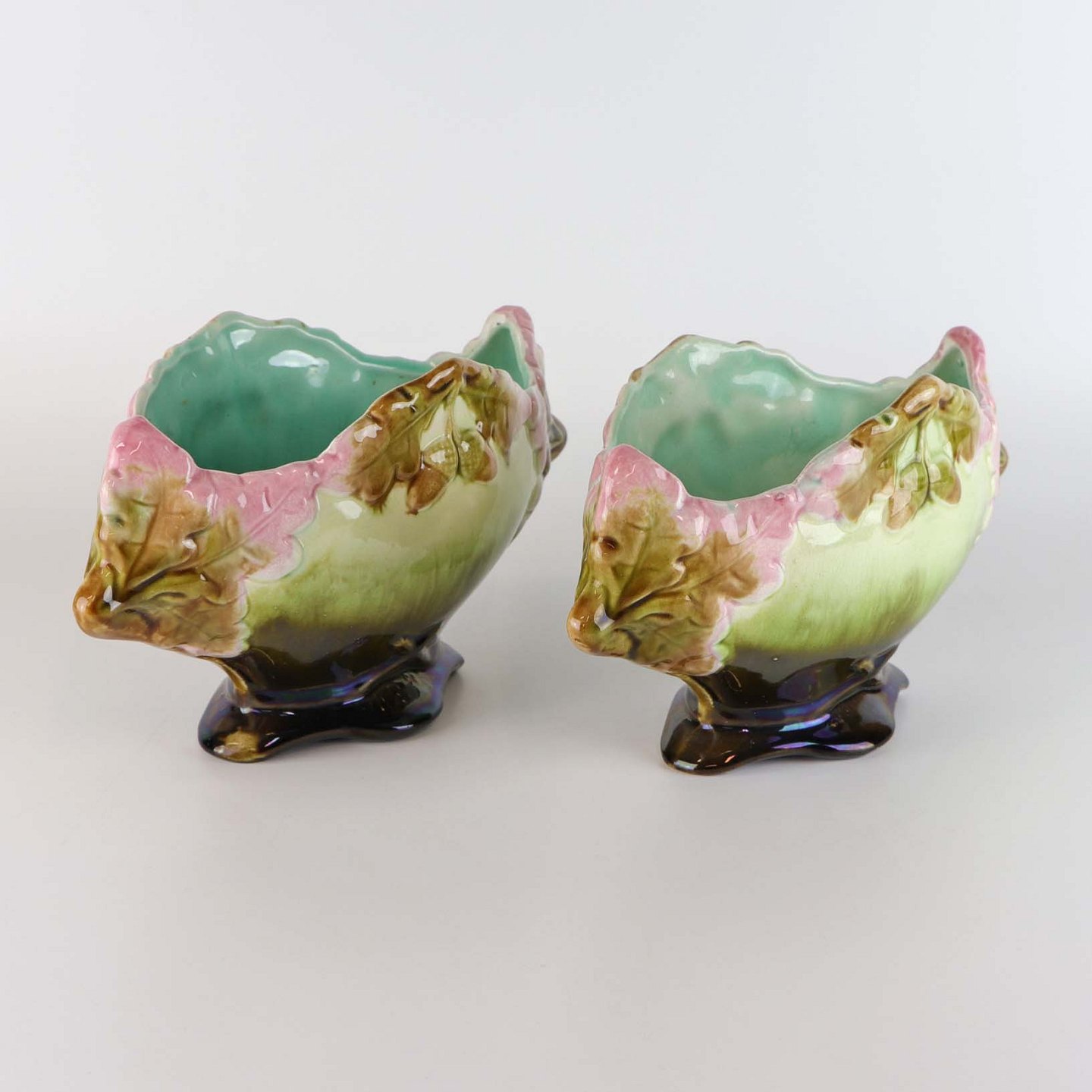 Et sæt ovale bordvaser i fajance i stilen art nouveau Majolica dekoreret med blade og agern. Nr. 6428
