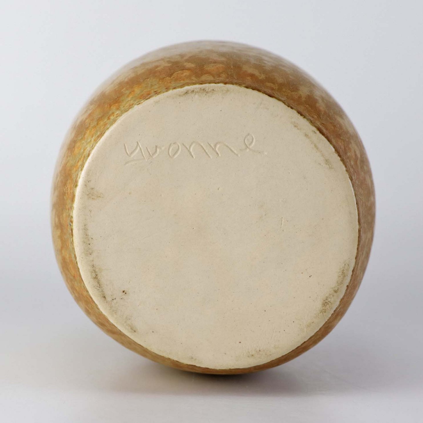 Vase i stentøj med glasering brune og gyldne nuancer.