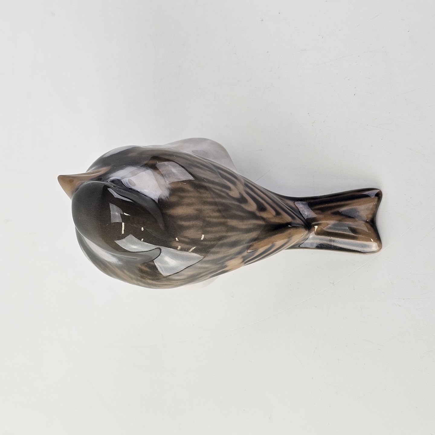Kongelig figur af porcelæn, med motiv af en siddende gråspurv