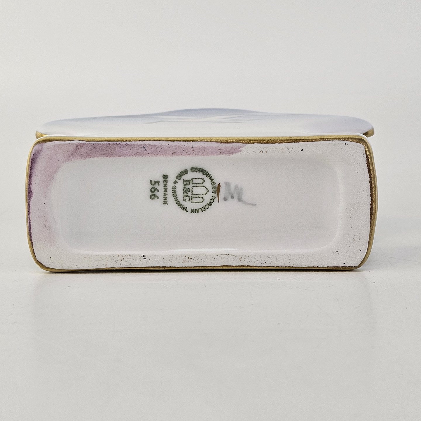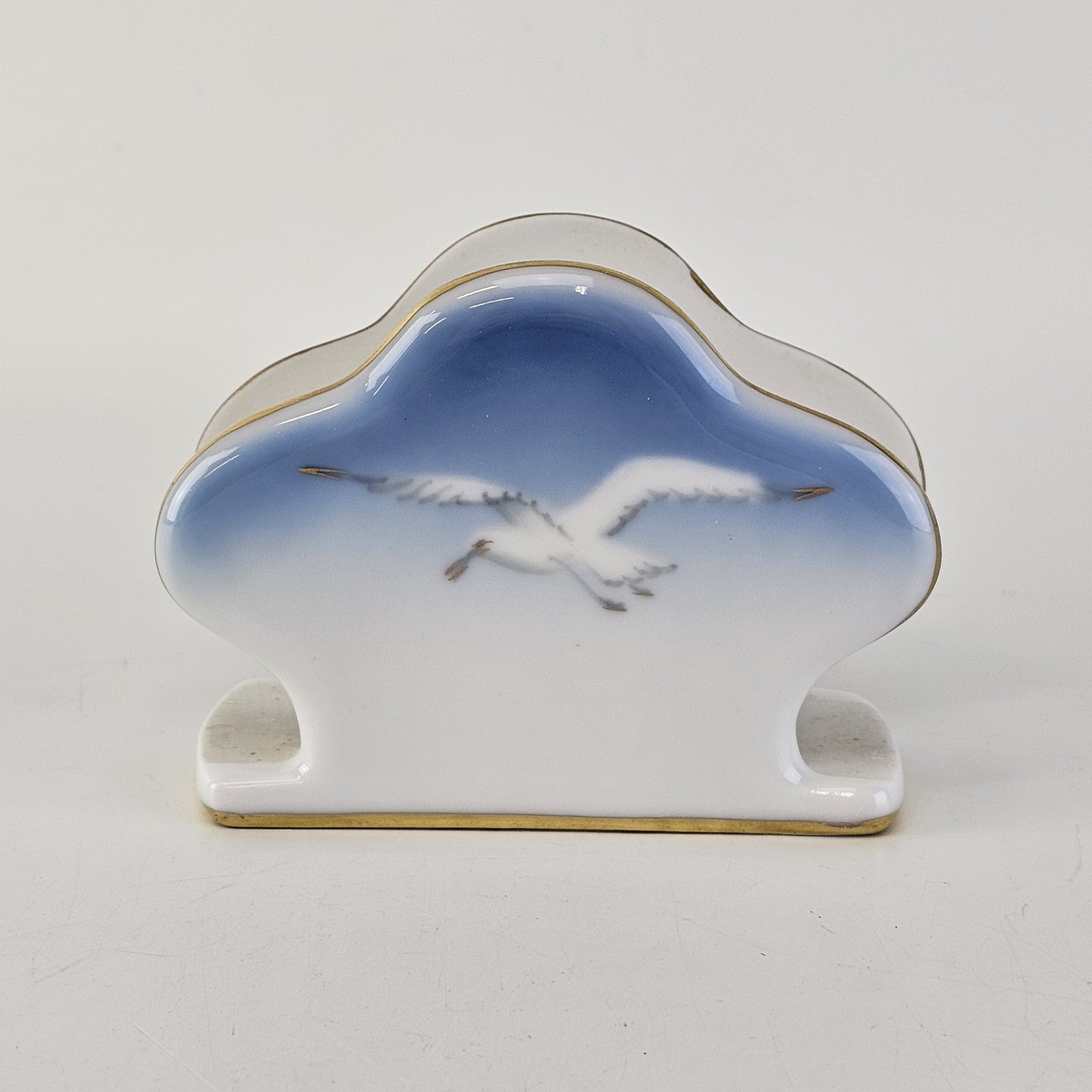 Servietholder af porcelæn i blålige farver med motiv af måger og guldkant