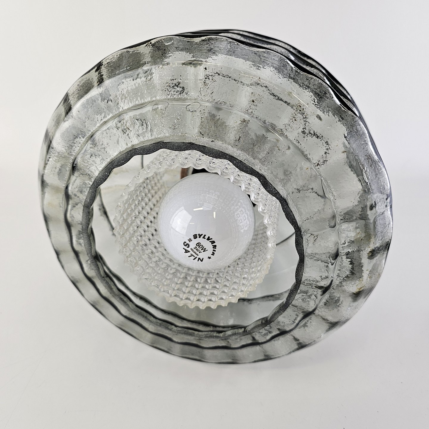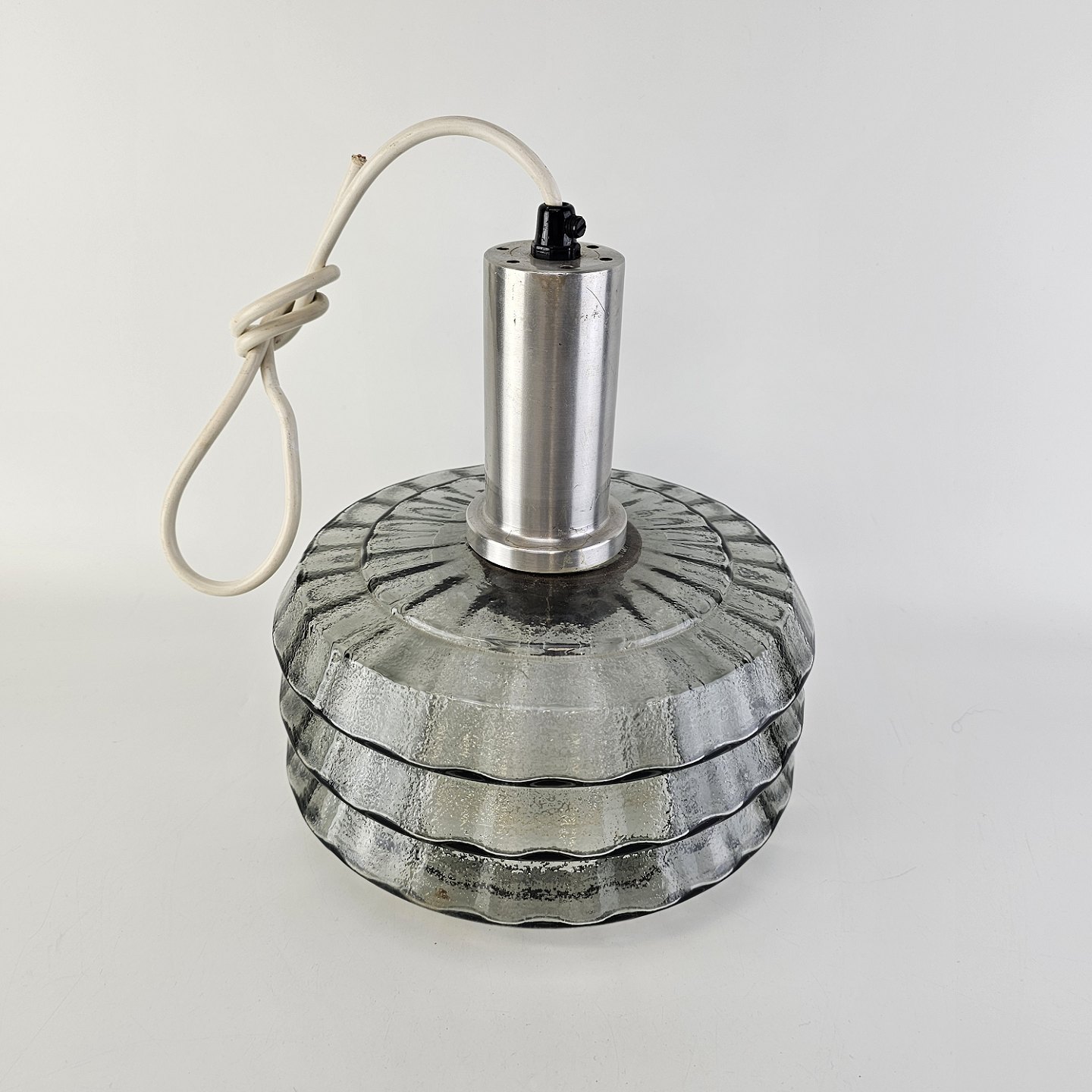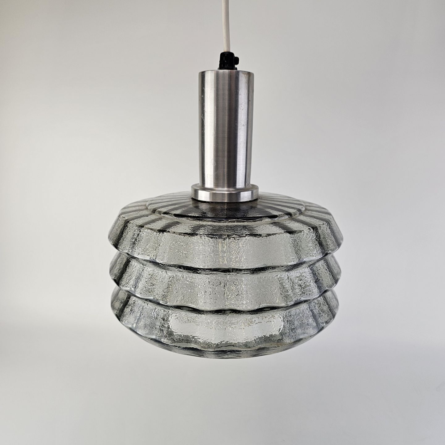 Pendel med skærm i grå-farvet glas i bølget mønster i tre lag.