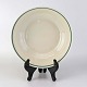 Service i glat cremefarvet porcelæn med grøn og sort kantstreg samt dekoration af blomster og grene i sort streg.