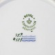Service i glat hvid porcelæn med sandfarvet dekoration og gylden kant.