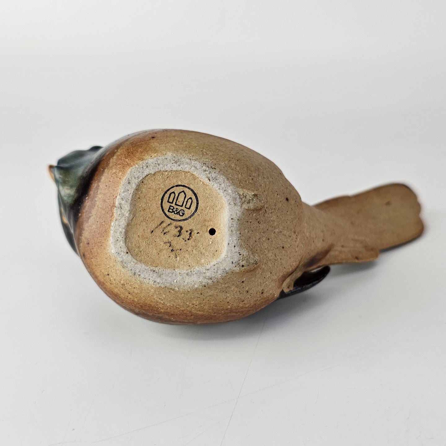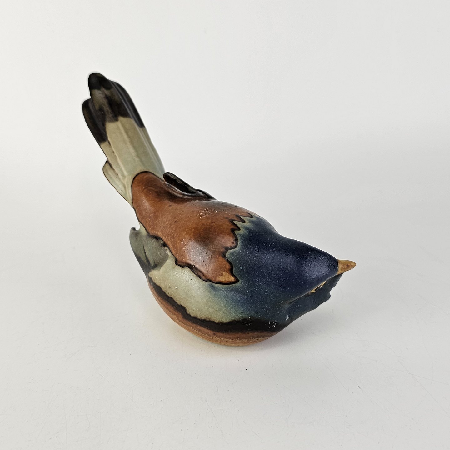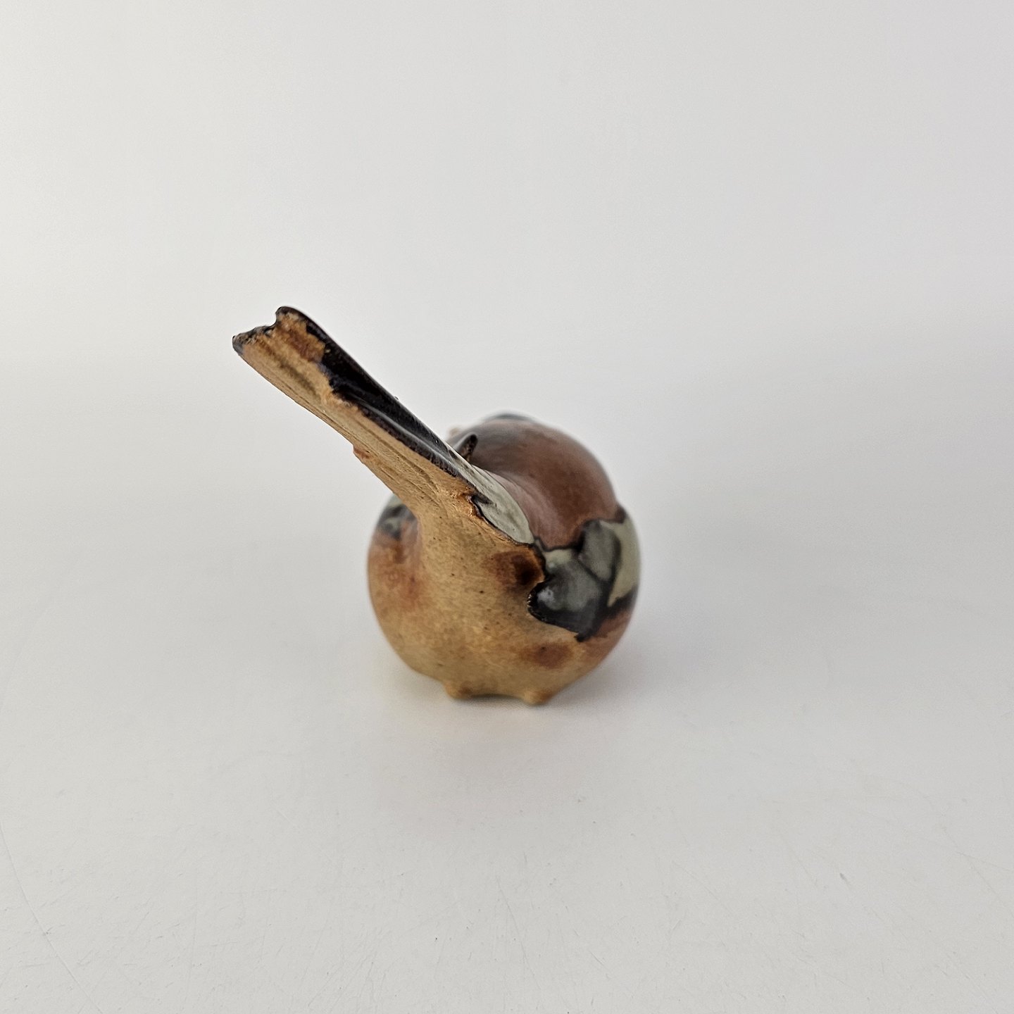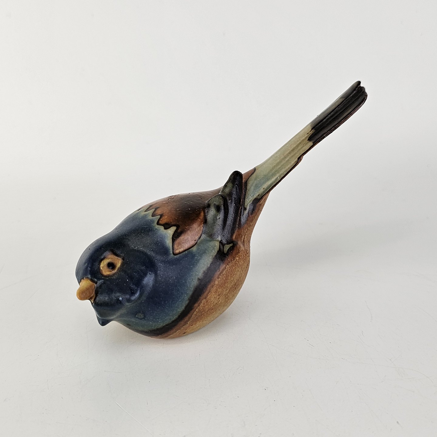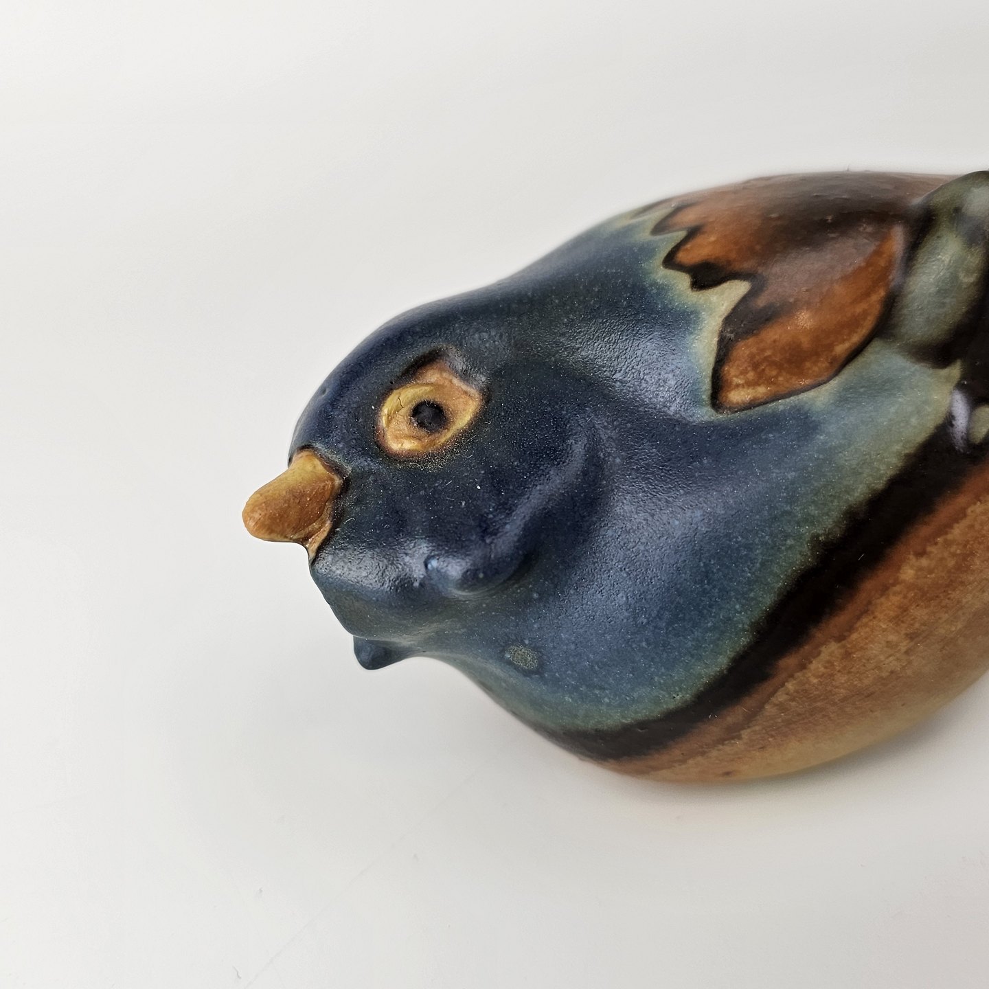Optimist figur i stentøj med motiv af en fugl med halen oppe