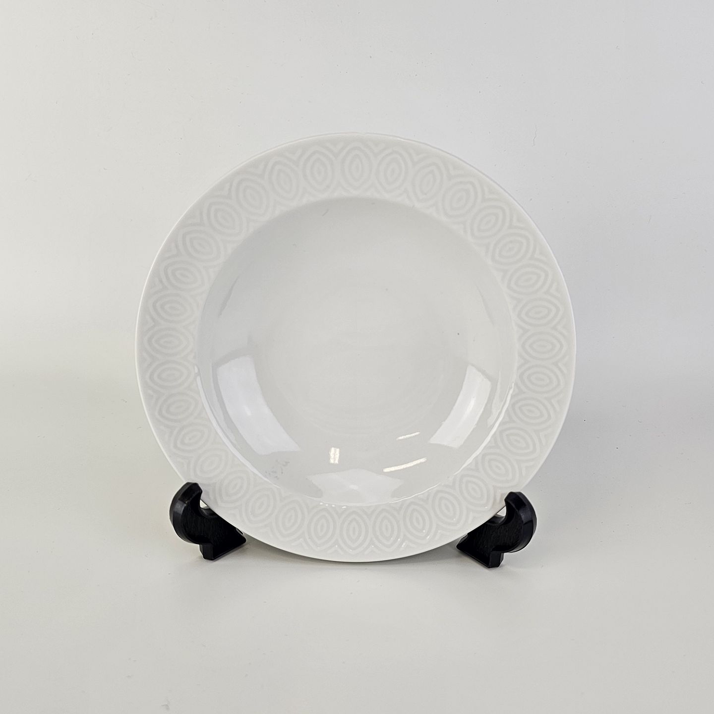 Lille dyb tallerken, ymerskål fra stellet Salto i hvidt kongeligt porcelæn