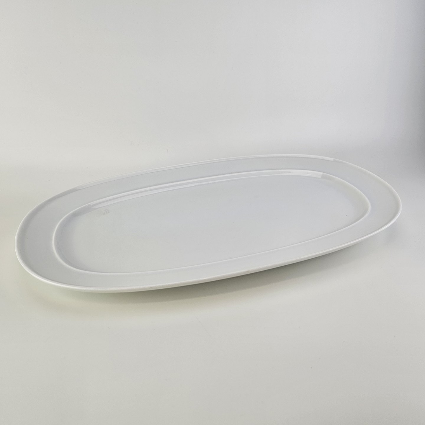 Rektangulært fad med runde hjørner i porcelæn fra stellet Hvid Koppel