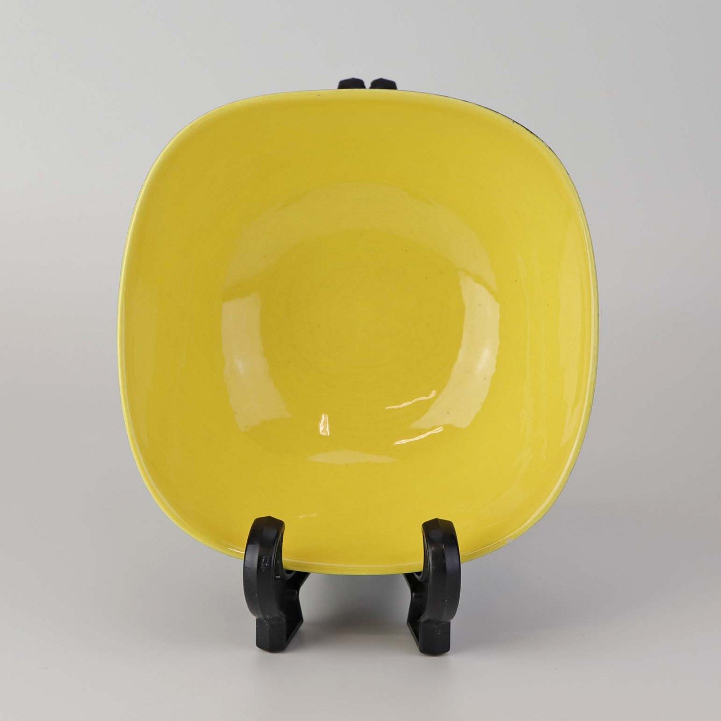 Fajancestel i sorter og gule farver.