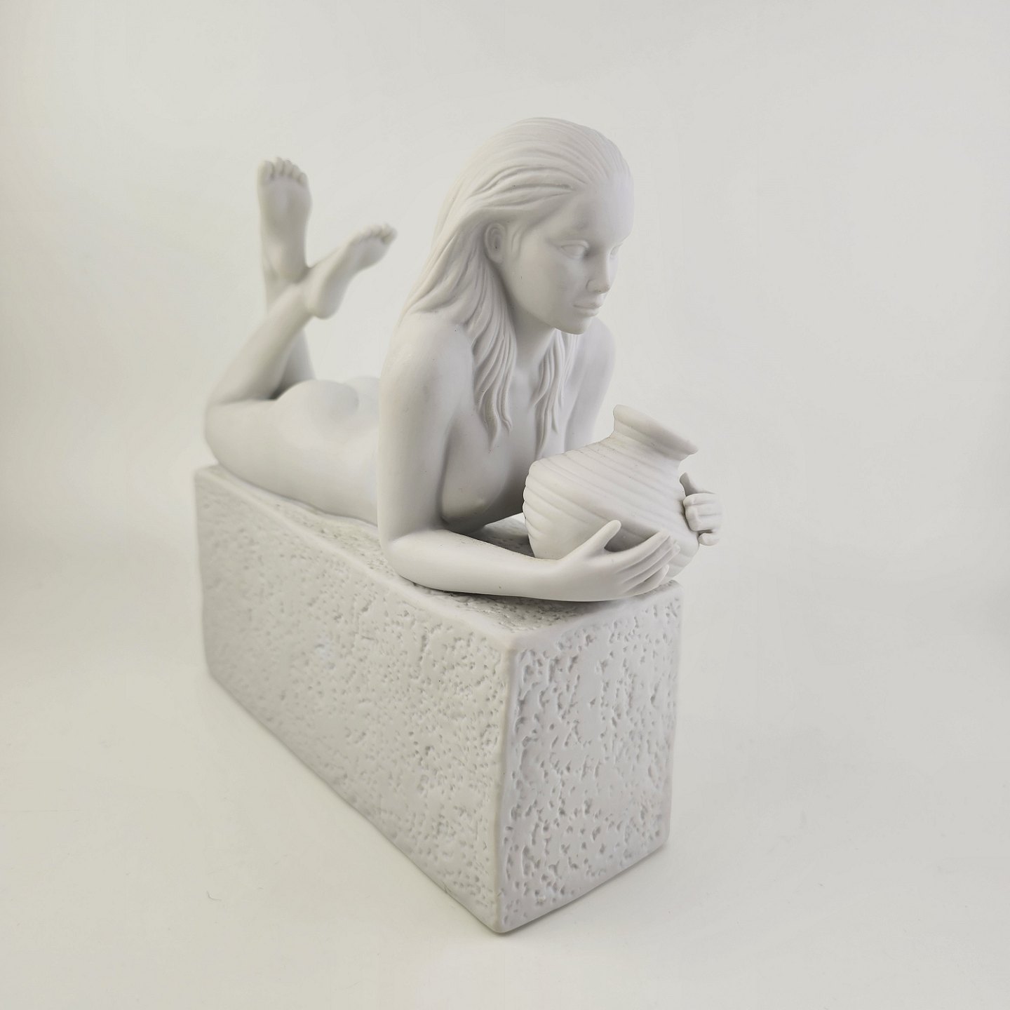 Figur i hvidt kongeligt porcelæn med motiv af stjernetegnet vandbæreren og titlen Aquarius
