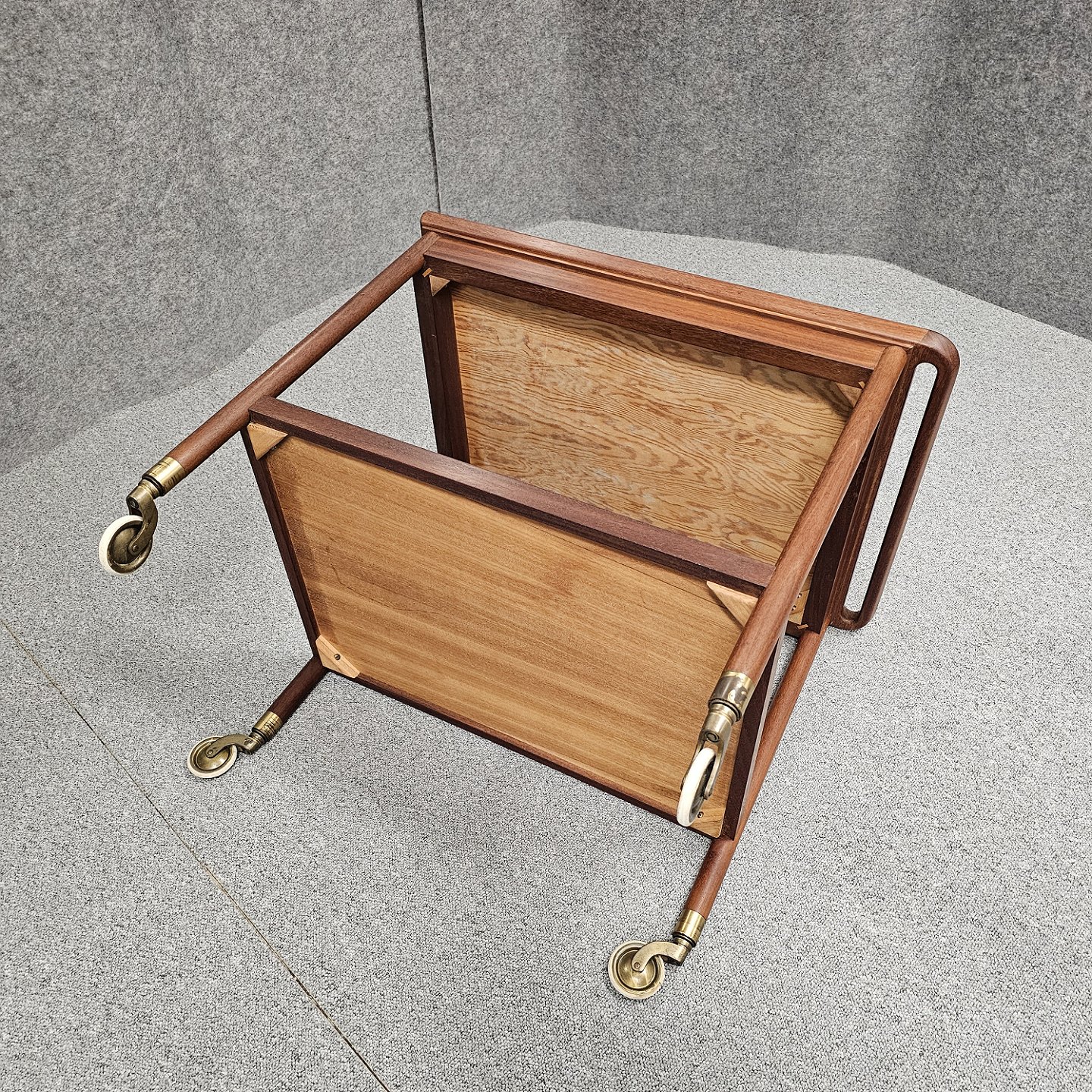 Rullebord i teak dekoreret med kakler i grønlige nuancer