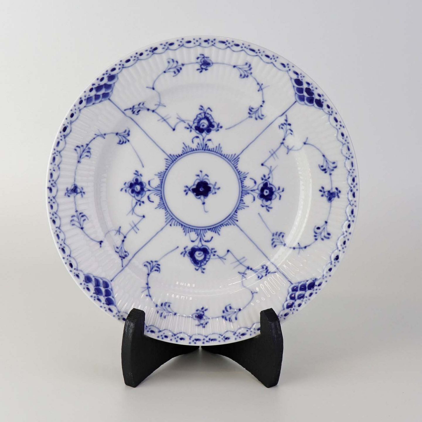 Stor desserttallerken i kongeligt porcelæn fra stellet Musselmalet Halvblonde. Nr. 1/573