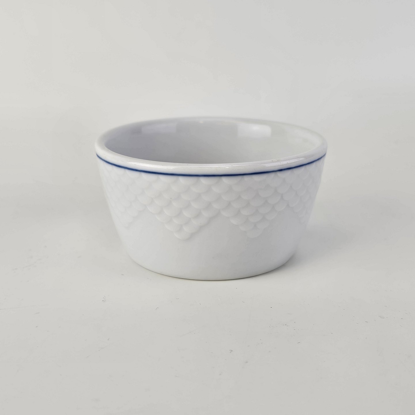 Hotelporcelæn Egetræ er hvidt og dekoreret med en blå streg og et blåt egetræ i midten