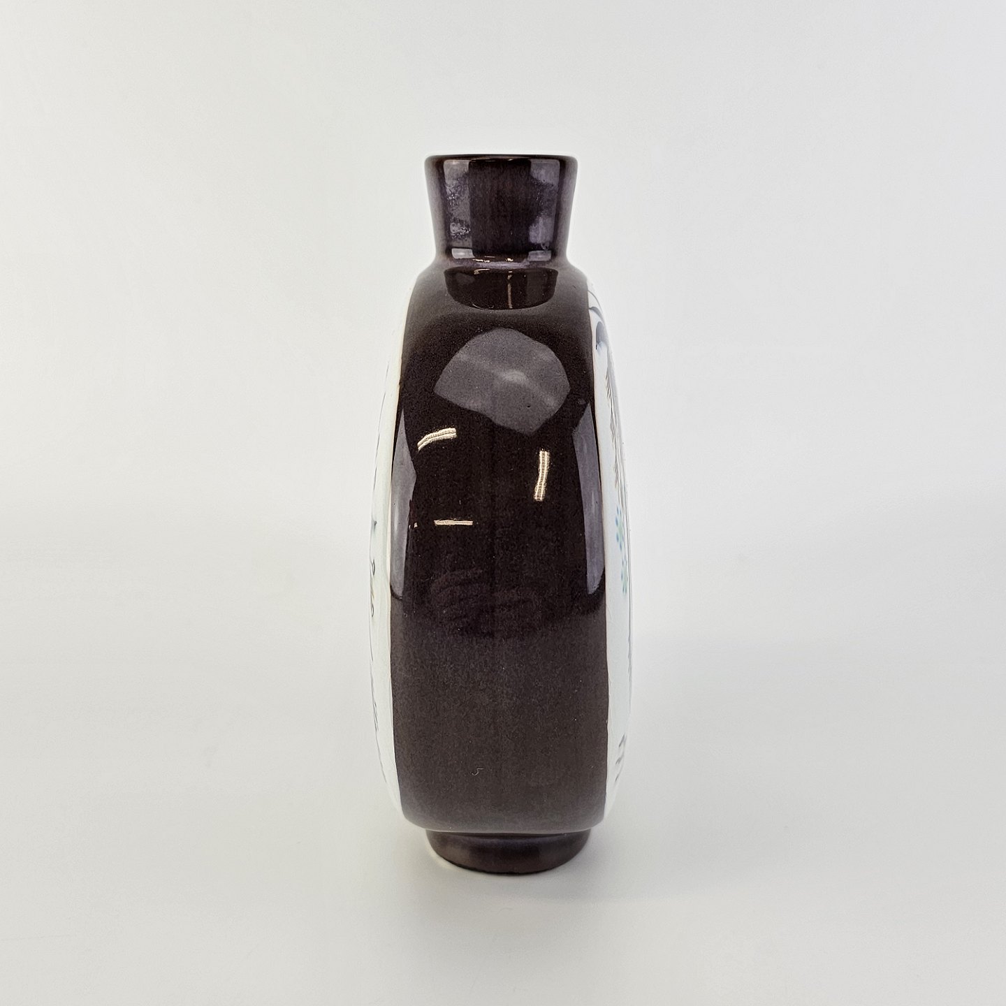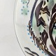 Rund flad vase fra serien Tenera. Vasen er i fajance med motiv af en fugl