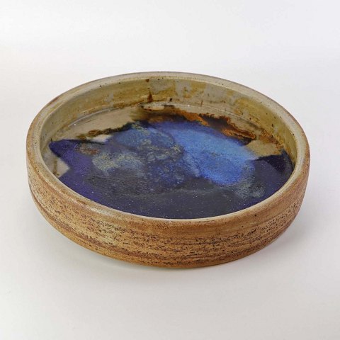 Bordskål i keramik med glasur i blå nuancer på indersiden samt uglaseret yderside.